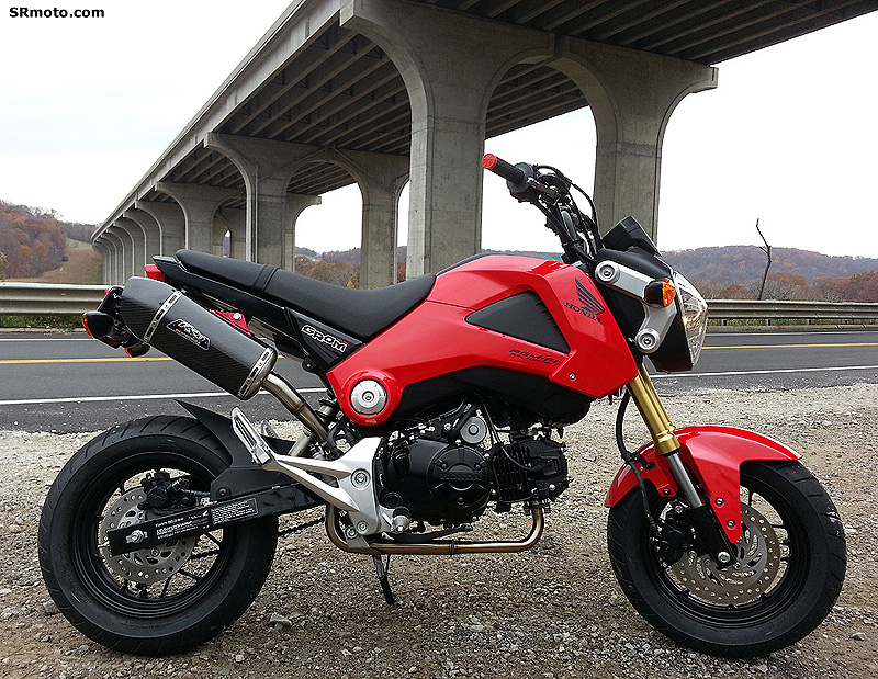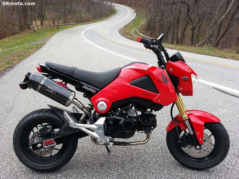 The SRmoto.com Honda Grom Project Bike is a 2014 model being setup for bombing the back roads around our shop. It currently has the following mods and accessories…