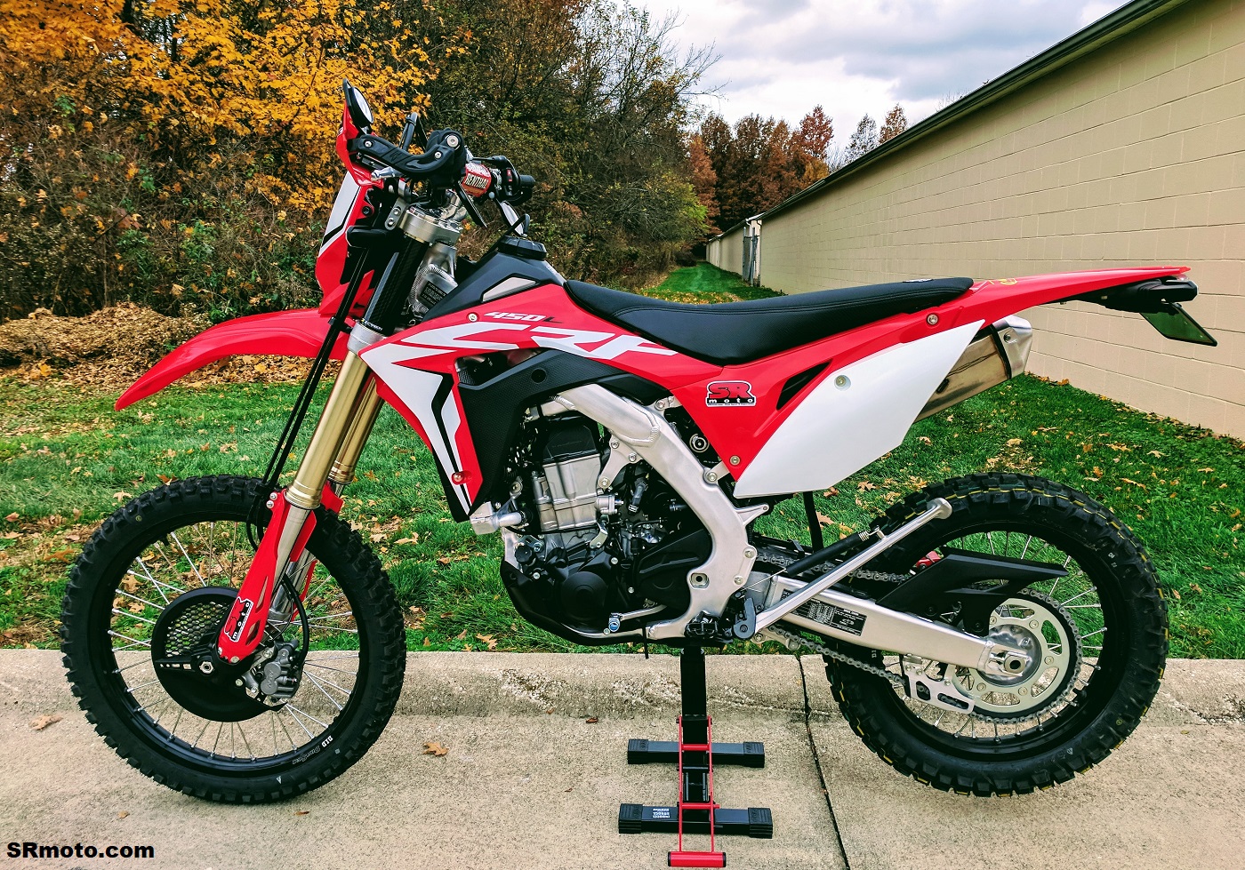 CRF450L Seat Concepts Comfort Seat, Standard Height, Black/Red Low Slip Cover at SRmoto