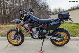 Shown in the photos above is one of our Suzuki DR-Z400SM project bikes with Continental TKC80 Tires installed on the stock DRZ SM wheels. These are a 60% off-road and 40% on-road tire.